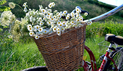 Daisies are just the friendliest flower, aren't they? They are waist-high out in the cottage garden these days, along with yellow and orange lilies, gardenias, lavender, red geraniums, and pink roses. Daisies in an old glass milk bottle are a kind of simple goodness that make me smile when I go downstairs to start the coffee. So did the coffee, "caramel drizzle" flavored beans sent home with me by Mom from Atlanta.
